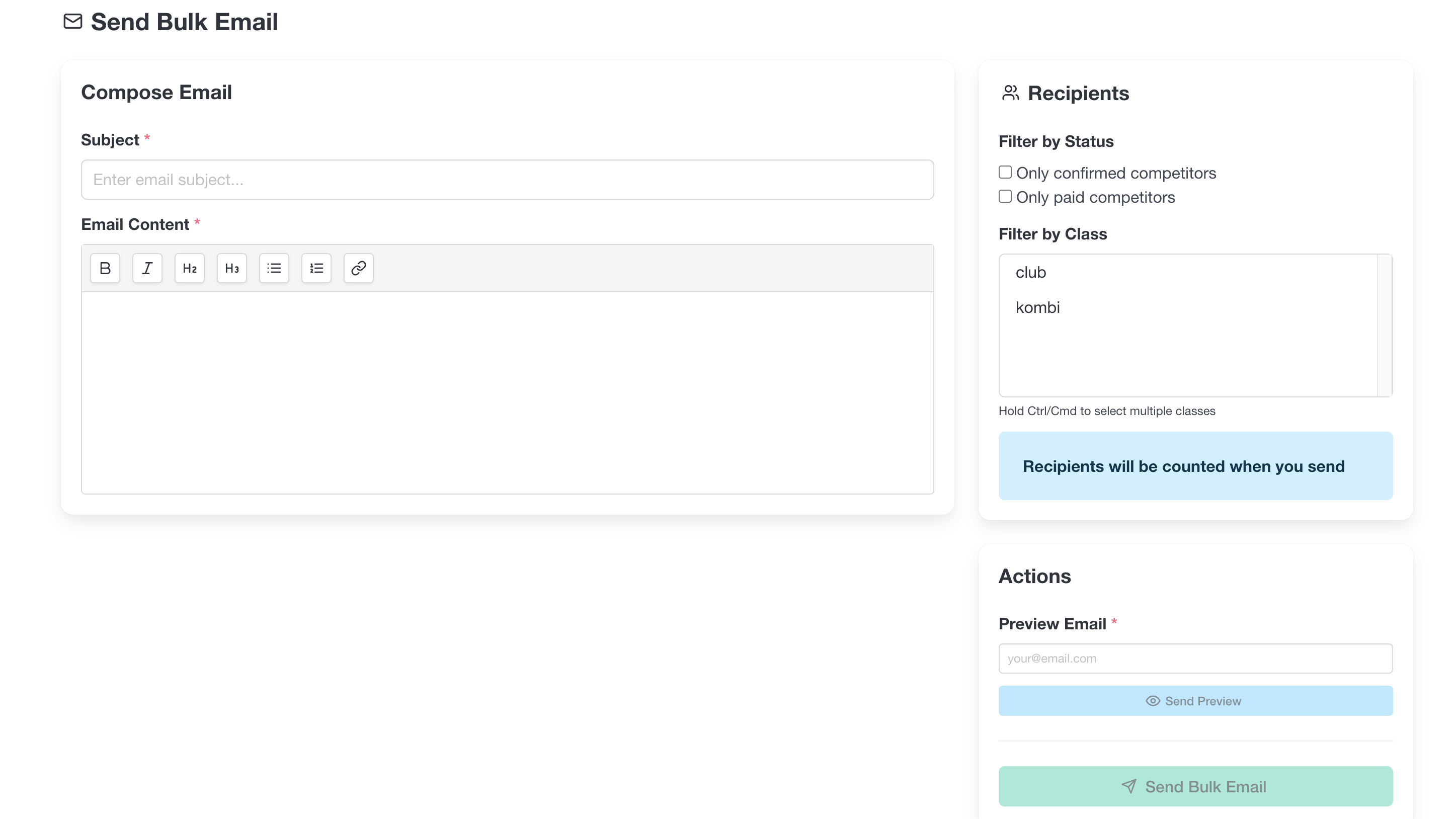 Manage competitors. Export a CSV for direct import into See You Competition. Send emails to all participants.