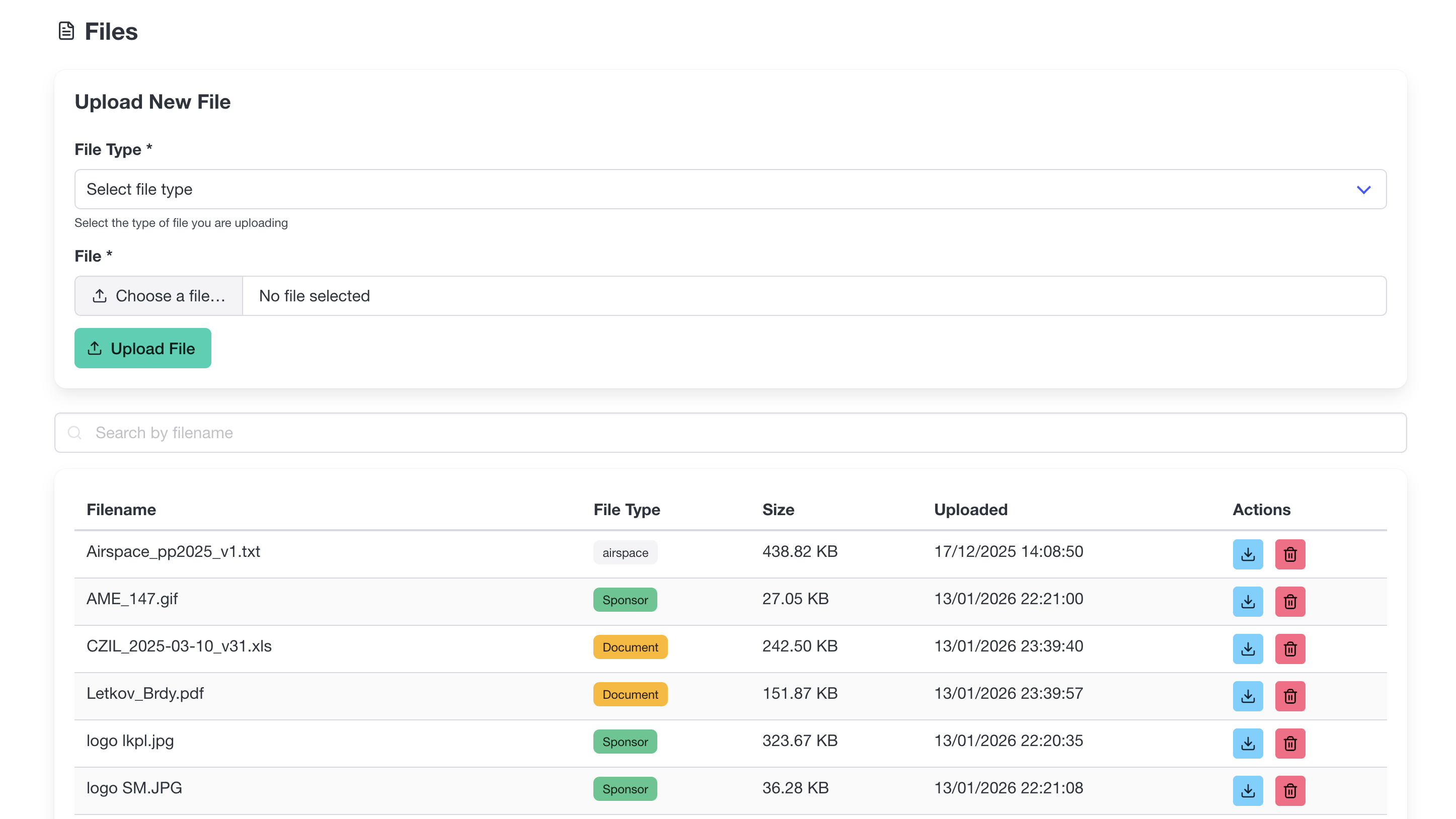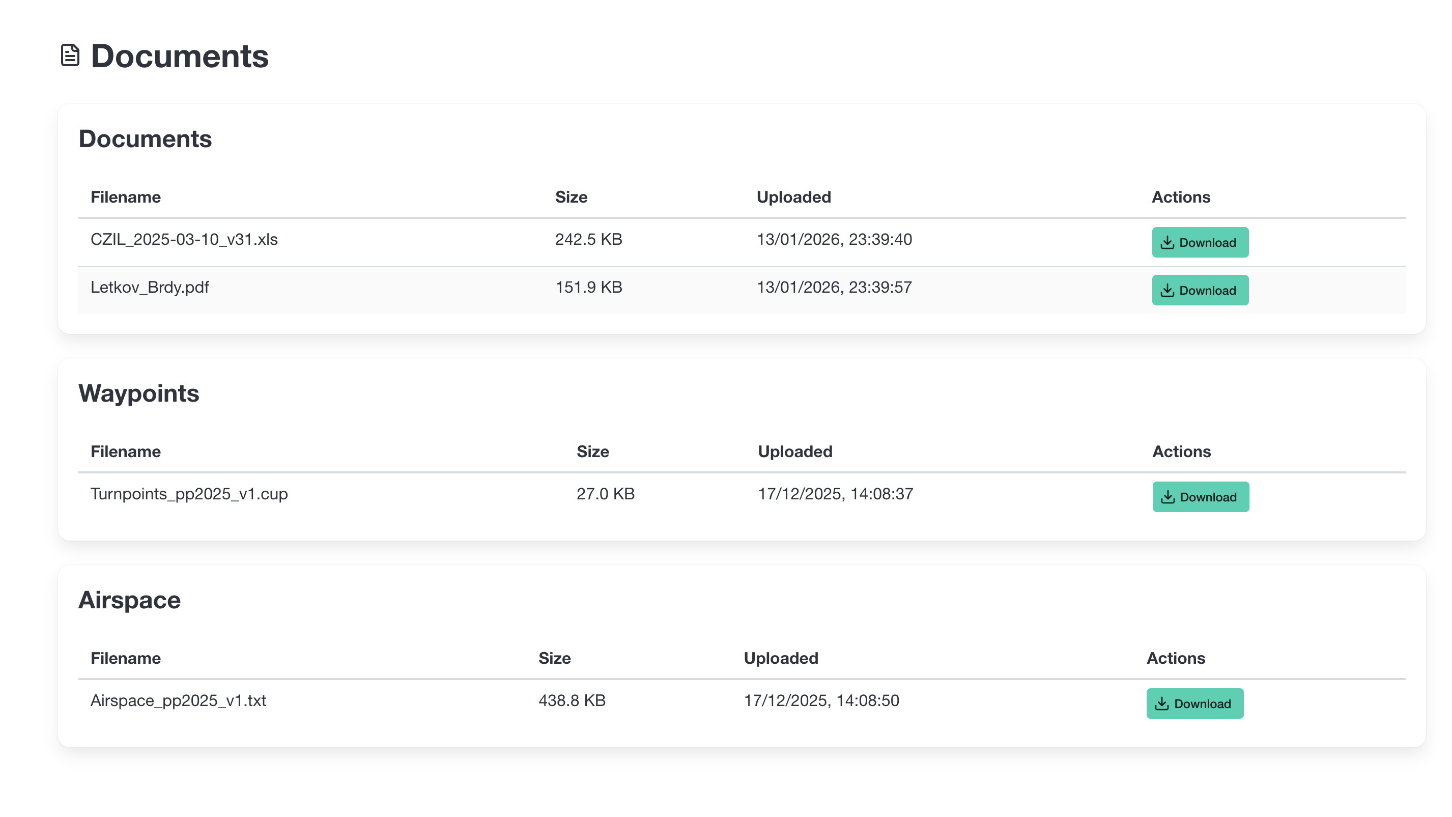 Synchronize waypoints and airspace files from Soaringspot. Easily upload other competition-related documents like sponsor logos or propositions.